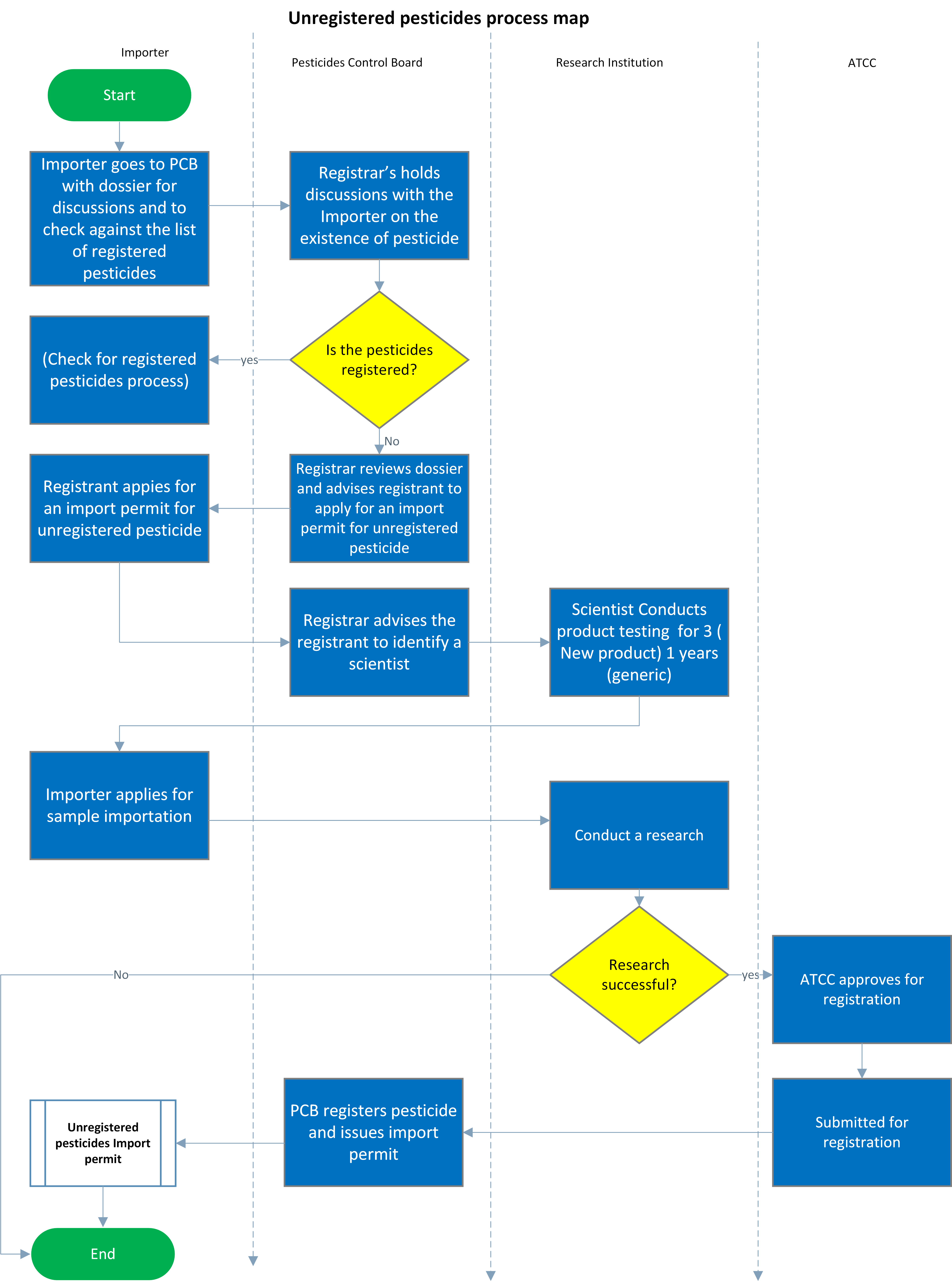 | 2 | The dossier is reviewed by the registrar and the registrant is advised to apply for an import permit for the unregistered pesticide. | |